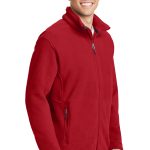 100% Polyester full front zip up fleece, front zippered pockets and inside pockets.