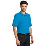 5-ounce, 65/35 poly/cotton pique; flat knit collar and cuffs, double needle armholes and bottom hem, side vents; metal buttons with dyed-to-match rims • Sizes: XS-6XL